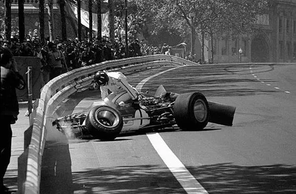 La lune de miel de la Formule 1 avec les appendices aérodynamiques du style Wacky Races s’arrête brusquement lors du Grand Prix d’Espagne 1969, la première course à se dérouler dans les rues qui entourent le parc Montjuic de Barcelone.