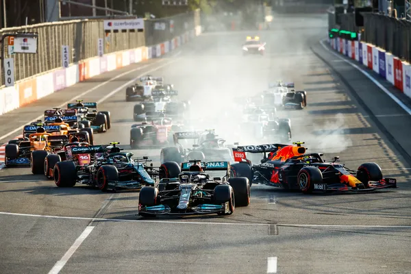 Absent du calendrier 2020 à cause des restrictions sanitaires suite à la pandémie de Covid-19, le paddock pose de nouveau ses valises à Bakou en 2021. Depuis le début de la saison, le combat fait rage entre Lewis Hamilton et Max Verstappen. L’étape azéri va être un tournant dans leur lutte pour le titre. Au départ, Lewis Hamilton prend la tête après avoir doublé le poleman surprise, Charles Leclerc.