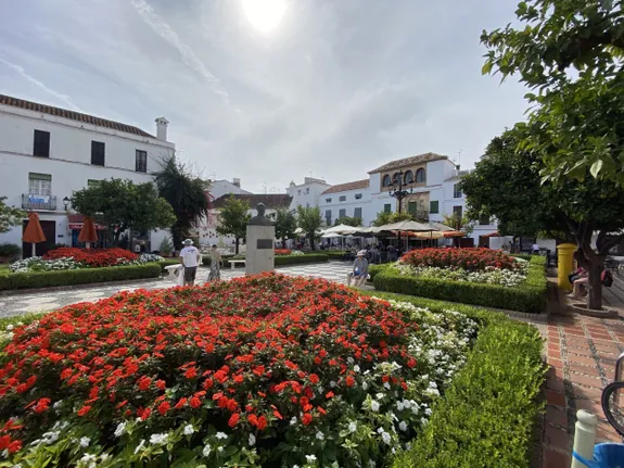 La réputation de “ville de luxe” attachée à Marbella se confirme vite à mon arrivée. Résidences secondaires, voitures de sport et terrains de golf peuvent être observés en grande quantité. Ici, une grande partie de la population vit confortablement. En toute logique, un climat chaleureux abrite la cité. Le soleil illumine la Plaza de los Naranjos, mais se cache derrière la jungle du Parque Alameda. Heureusement pour les amateurs de bronzette, il est omniprésent sur les bords de mer. Là-bas, une longue balade de 15 km avec de jolis paysages et plusieurs stations balnéaires s’offrent à nous. Mais le match étant à midi, c’est très rapidement que je visite ces belles choses. Effectivement, le football m’appelle.