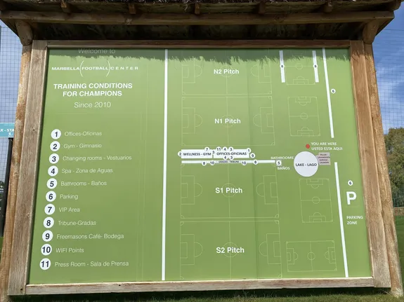 Dans ces moments, je suis content d’être trop prévoyant. J’aime bien être très en avance et ce contretemps me conforte dans cette philosophie. Je débarque ainsi dans le Marbella Football Center à une trentaine de minutes du coup d’envoi. En soi, je m’étais renseigné sur le complexe mais je ne pensais pas que je m’y rendrais. Créé en 2005, ce centre sportif de haut niveau ouvre ses portes aux grandes équipes pour venir s’entraîner. Lieu idéal pour les mises au vert, cet endroit dispose de tout le nécessaire pour chouchouter nos footballeurs et footballeuses pro. Salle de sport dernier cri, de multiples terrains taillés au millimètre, un grand spa, et surtout un climat de rêve toute l’année.