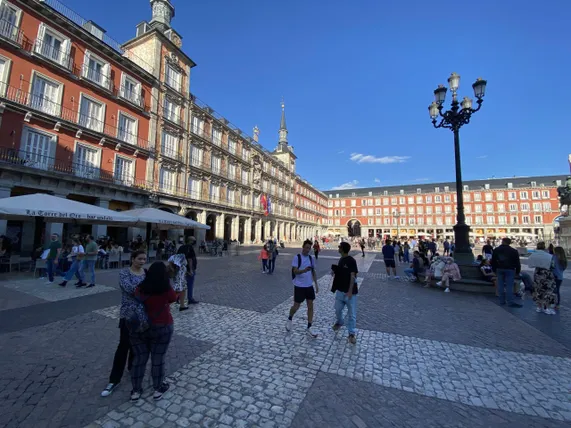 Il n’est pas question de s’apitoyer sur mon sort. La capitale regorge de surprises à l’image de son parc du Retiro dans lequel se cache le Palais du Cristal. Petit lac, fontaine, verdure, tout est réuni pour respirer autre chose que des fumées de pots d’échappement. Le cadre y est reposant et les batteries se rechargent. Le temps file mais je m’autorise un dernier crochet sur la mythique Plaza Mayor.