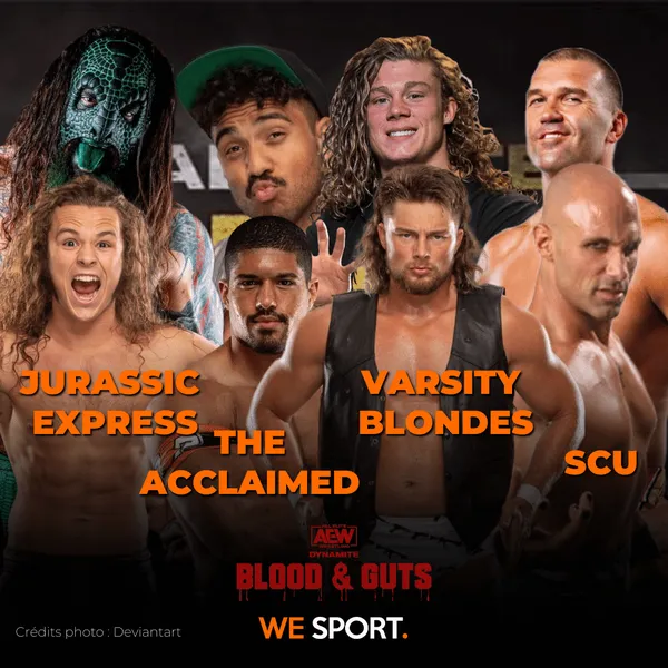 Cette nuit au Daily’s Place de Jacksonville en Floride aura lieu le show spécial AEW Blood & Guts. Ce show nous propose 5 matchs dont le match Blood & Guts, un Fatal 4 Way par équipe qui désignera le futur challenger pour le titre par équipe des Young Bucks. Au programme également, un match féminin simple, un match par équipe et enfin un match simple. We Sport vous propose la carte en détails du show qui promet d’être mémorable.