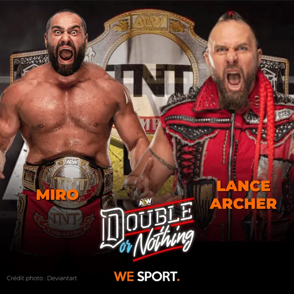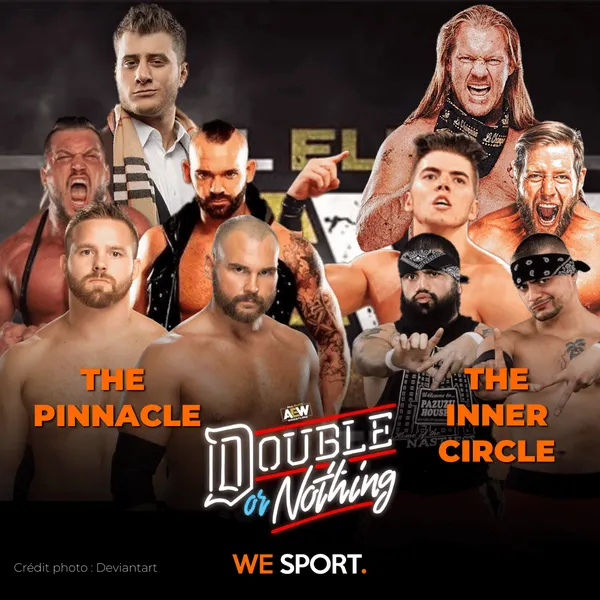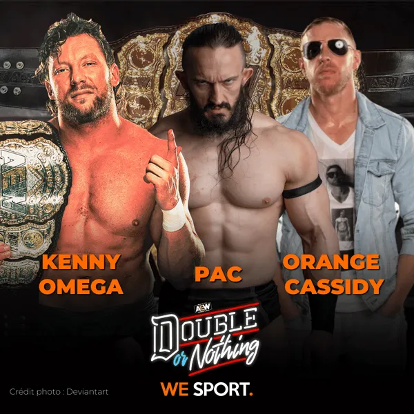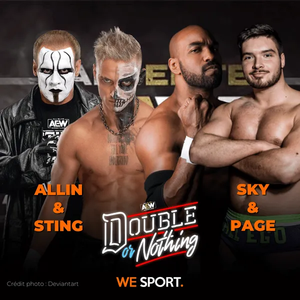 Cette nuit au Daily’s Place de Jacksonville, Floride, aura lieu le pay-per-view AEW : Double or Nothing. Cette carte est composée de dix matchs, dont un match pour le titre féminin de la NWA en pré-show, une bataille royale pour déterminer le prochain challenger au titre AEW, plusieurs matchs par équipe ainsi que plusieurs matchs simples. We Sport vous présente cette carte !