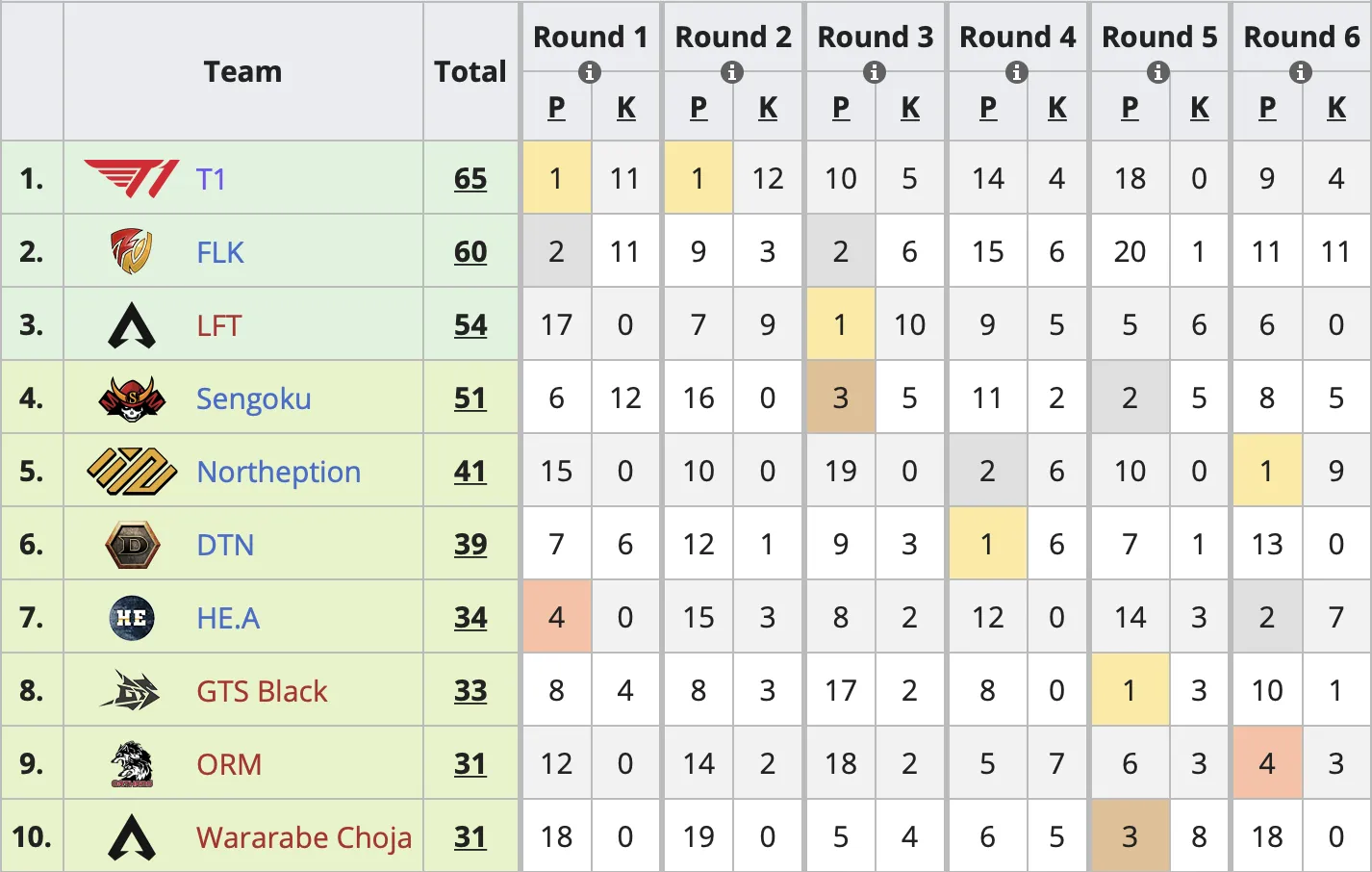 Au sein de la région APAC South, ce sont les joueurs de la structure Reignite South (50% Thaïlandaise, 50% Japonaise) qui se sont imposés, grâce notamment à leurs deux joueurs australiens Genburten et Zer0. Ils ont notamment devancé MiTH T1 et WPACK ARTIC. En Amérique du Sud, ce sont les Brésiliens d’Elite BR qui se sont qualifés, devant leurs collègues de Team Singularity et Fênix I. Enfin, pour la région MEA, c’est Flying Camel qui a complètement surdominé les débats. L’équipe réalise d’ailleurs la meilleure performance générale sur l’ensemble des 6 régions, avec un score de 102 points. Les 4 Top 1 réalisés par l’équipe, dont deux avec 13 kills, ont clairement fait la différence par rapport à leur plus proche concurrent, les Turcs du Fenerbahce eSport. Elite Gaming complète le podium et représente bien l’Afrique du Sud sur la scène MEA.