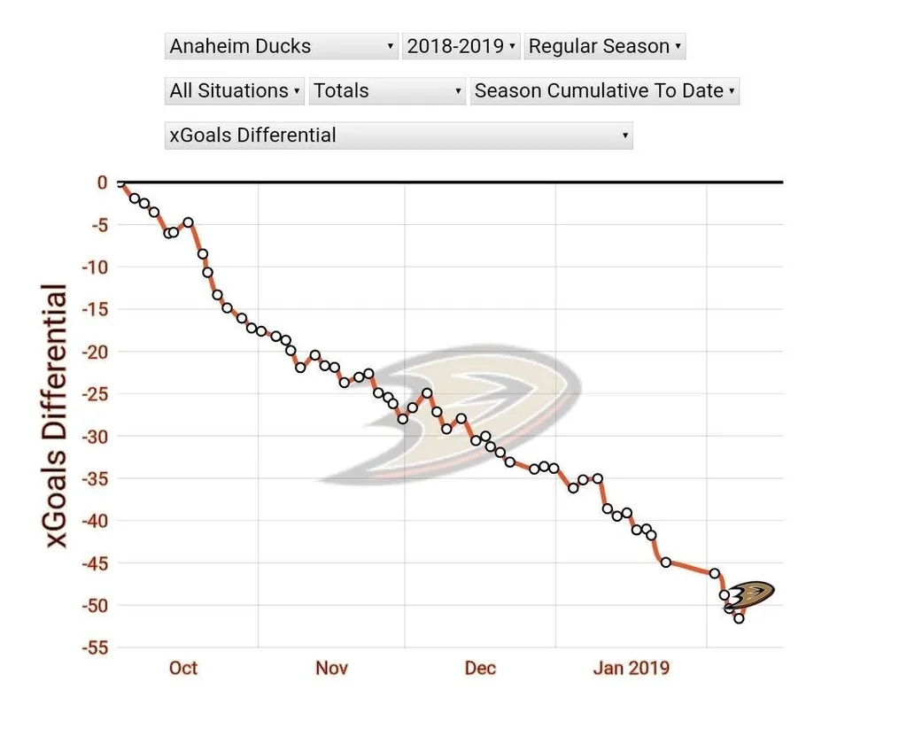 Il faut en conclure que certains attaquant jouent de malchance comme Ondrej Kase ou Ryan Getzlaf malgré des statistiques loin d’être catastrophiques. Si John Gibson fait « la job » devant son filet, il ne reste que la défense et la profondeur d’attaque à blâmer. Le jeu d’équipe ne fonctionnait plus. Les situations spéciales (Infériorité et supériorité) ne fonctionnaient pas du tout. Si l’équipe tire beaucoup, ce qui peut gonfler le Corsi, l’équipe n’obtient pas énormément de chances de marquer. C’est, selon moi, ce qui explique la chute des Ducks d’Anaheim.