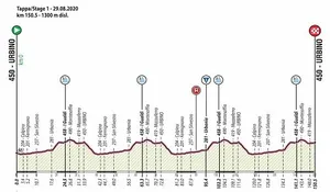 Tracée autour d’Urbino, la première étape semble promise aux sprinters. Toutefois, il semble peu probable que le peloton arrive groupé sur la ligne. Avec le circuit dessiné autour de la ville, il semble plus probable qu’un groupe d’une cinquantaine de coureurs se joue la victoire. En effet, avec son relief bosselé, ce circuit semble propice à ce qu’une première sélection se fasse avant le sprint.