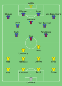 Ci-dessus : compositions des équipes d'Arsenal et du FC Barcelone lors de la finale de LDC 2006 (source : wikipédia)