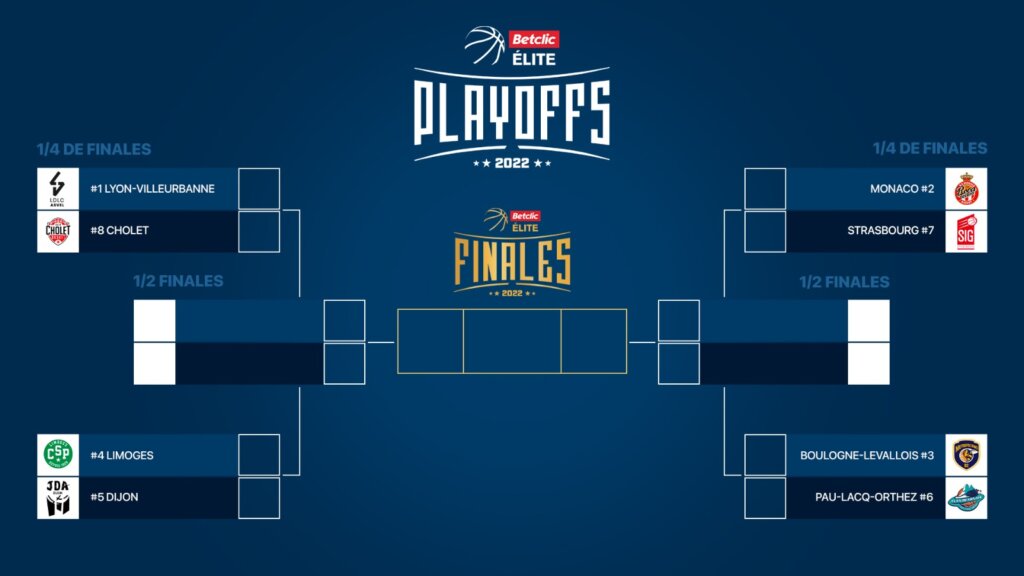Qualifié de dernière minute, Cholet aura la lourde tâche de défier le leader de la saison régulière l'ASVEL, invaincu depuis plusieurs semaines en Betclic Elite et qui n'a pas d'autre objectif que de soulever le trophée en juin. Pour cela, les hommes de TJ Parket devront ensuite écarter le vainqueur de la confrontation entre le CSP Limoges et la JDA Dijon, certainement l'affiche la plus équilibrée de ces quarts de finale. L'autre épouvantail de ces play-offs, Monaco, coiffé au poteau par les Villeurbannais en saison régulière, risque d'avoir la tâche un peu plus compliquée puisqu'ils devront affronter tout d'abord la SIG Strasbourg, habitué des phases finales puis le vainqueur de la série entre les Metropolitans, 3e de saison régulière, et Pau-Lacq-Orthez.