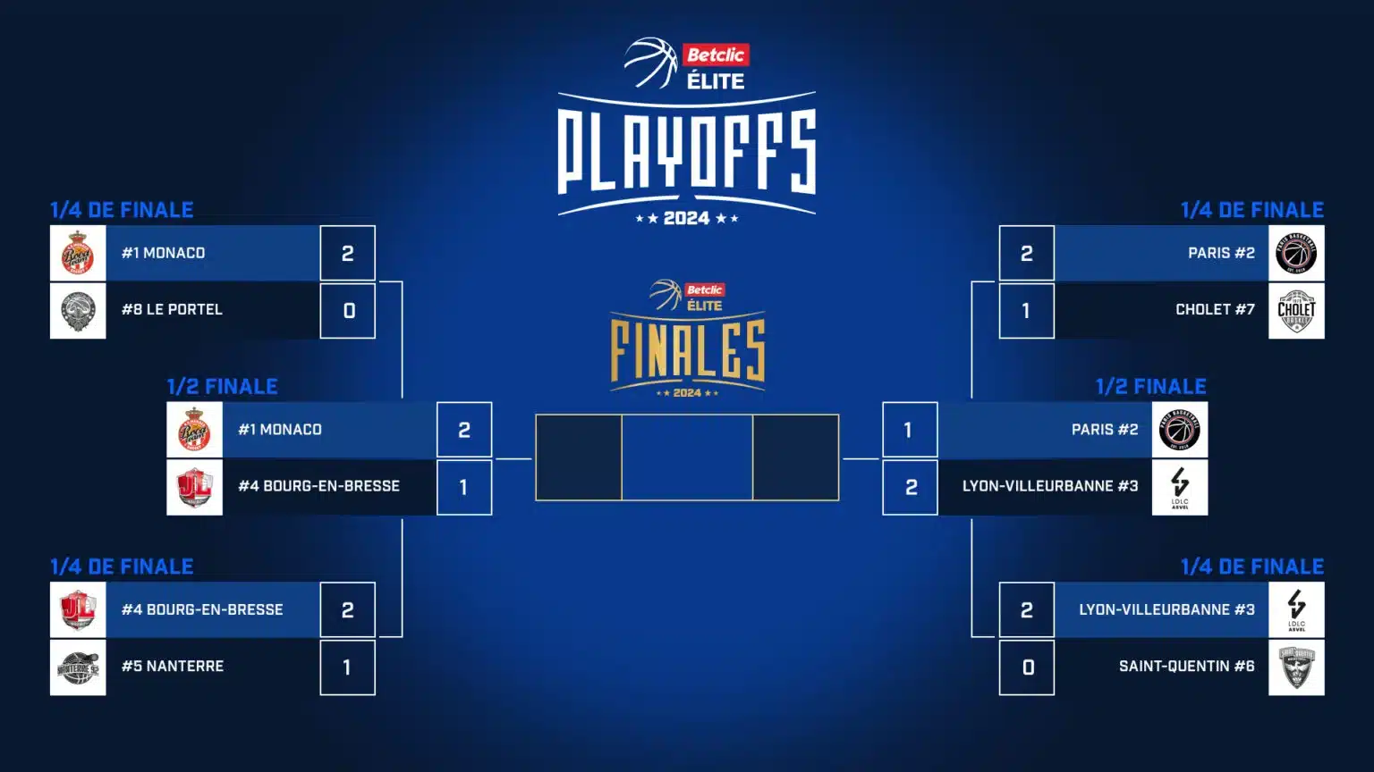 Monaco et l'ASVEL ne se sont pas fait surprendre en quart de finale des playoffs 2024 de Betclic Elite. Les Monégasques ont laisse aucune chose au Portel. Même scénario pour l'ASVEL qui est venu à bout facilement de Saint-Quentin. Surprise lors du match 1 à domicile, le Paris Basketball devra jouer un match 3 décisif face à Cholet. Bourg-en-Bresse et Nanterre s'affronteront également dans un match 3 qui s'annonce bouillant.