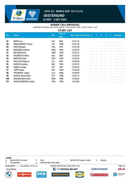 Biathlon 2023 Östersund : la startlist individuel femmes