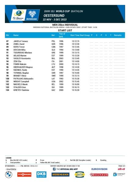 Ce dimanche à 14 h 30 s'élancera la saison 2023 de Biathlon en Suède à Östersund. Après le relais de ce samedi, voici la startlist de cette édition chez les hommes.