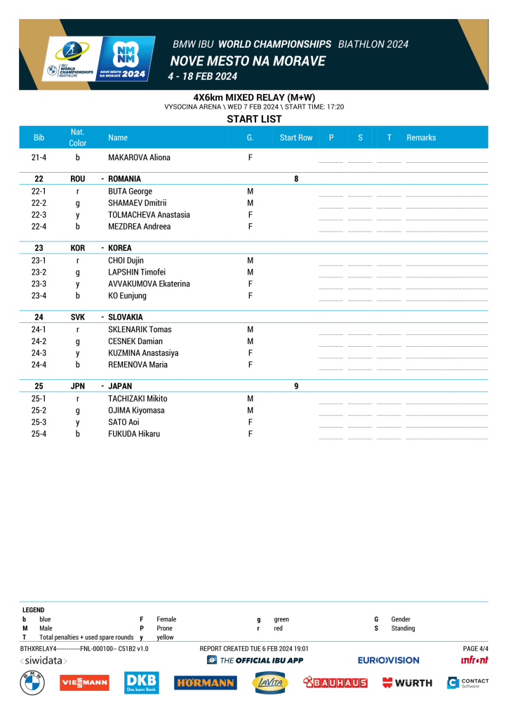 Découvrez la liste de départ du relais mixte des Championnats du Monde de Biathlon 2024 à Nove Mesto (République Tchèque). Le départ de la course sera donné ce mercredi 7 février, à 17h20.