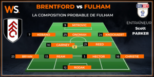 Scott Parker devrait reconduire son même 11 mais un doute persiste, et pas des moindres. Son attaquant phare, Aleksandar Mitrović s'est entraîné avec l'équipe cette semaine. Blessé aux ischios-jambiers depuis un bon moment, le meilleur buteur cette saison pour le club londonien avec 26 réalisations a des chance d'être sur le terrain. Il est évident que le Serbe tentera tout pour être titulaire ce soir. S'il venait à être trop juste, c'est Bobby Reid qui sera aligné en pointe.
