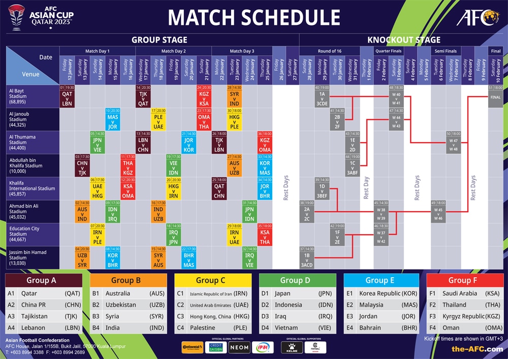 Le calendrier de phase de poules de la Coupe d'Asie des Nations 2024