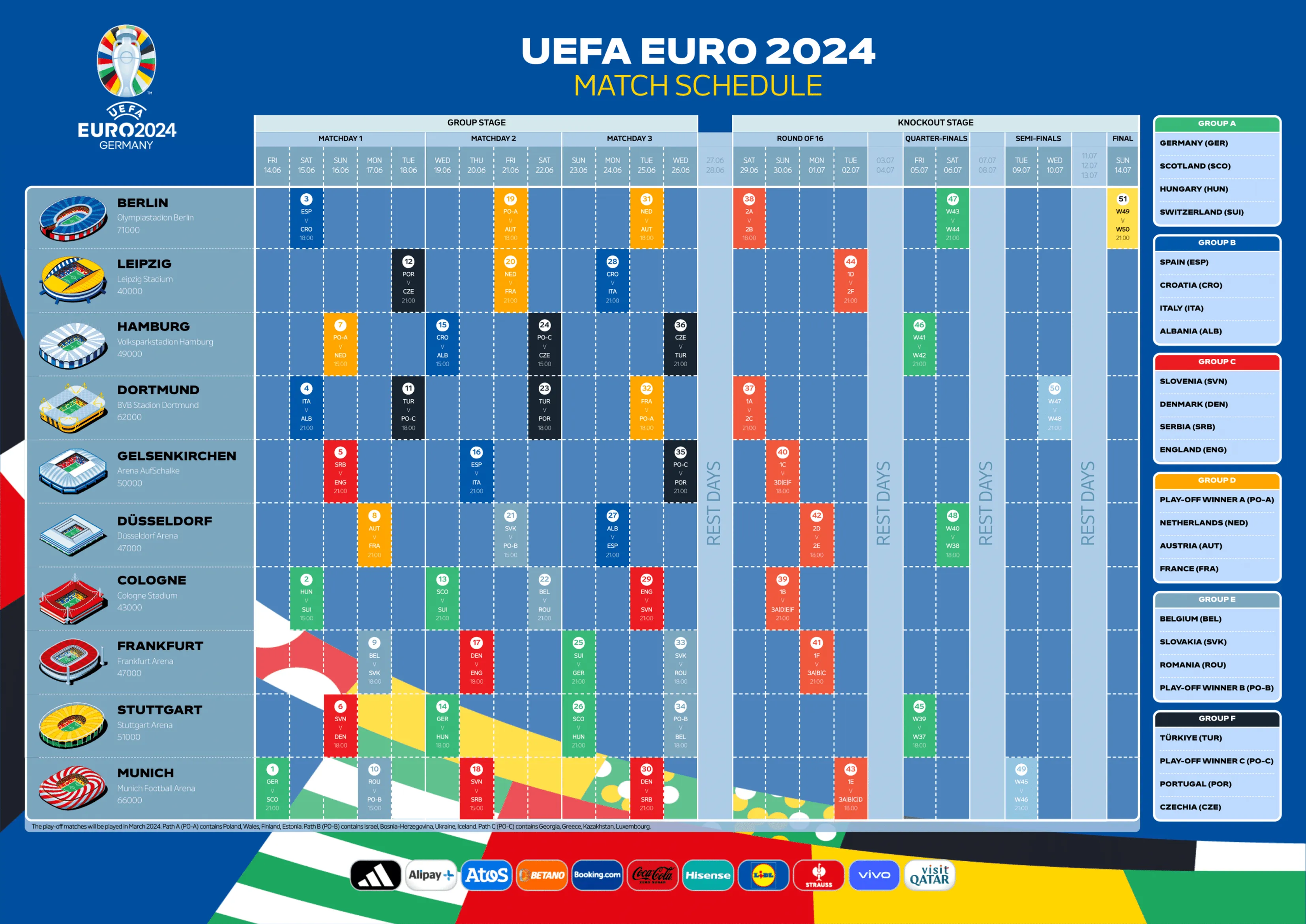 LES GROUPES DE LA PHASE DE POULES DE L’EURO 2024