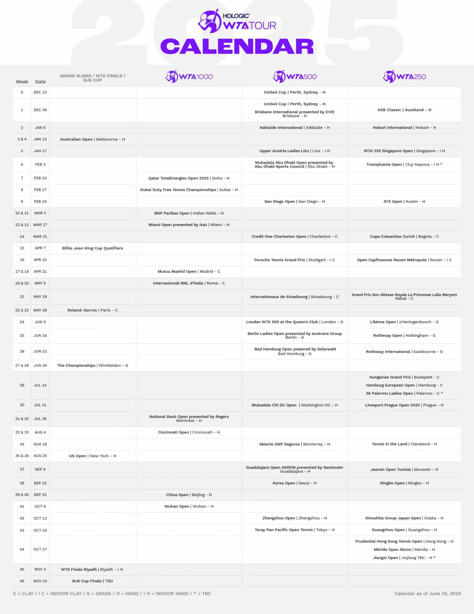Calendrier WTA 2024 : Les tournois de l’année