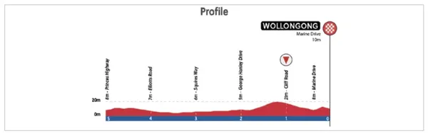 Après 62 km de course, les tours du circuit urbain de Wollongong, long de 17,1 km, commencent avec la montée de Mount Pleasant, sur Ramah Avenue, comme pièce maîtresse. Les femmes effectuent la boucle six fois et les hommes 12 fois.