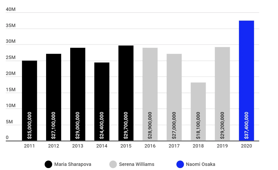 Plusieurs éléments peuvent répondre à cette question. Tout d’abord, Naomi Osaka bénéficie d’une double culture japonaise et américaine. Née au Japon d’une mère japonaise et d’un père haïtien, Naomi grandit aux Etats-Unis. Sa double culture ainsi que sa personnalité attachante font d’elle une joueuse particulièrement appréciée. Son pouvoir médiatique attire un public de plus en plus large, et de facto, de nombreux sponsors. A tel point qu’en 2020, Naomi Osaka est devenue l’athlète féminine la mieux rémunérée au monde avec plus de 37,4 millions de dollars de recettes. Elle détrône ainsi les superstars Maria Sharapova et Serena Williams.
