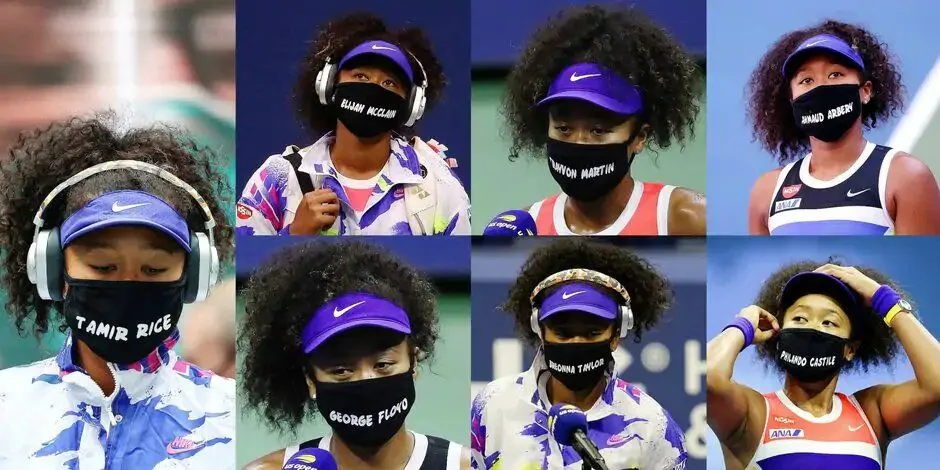 Lors de l’US Open 2020, elle continue d’apporter son soutien au mouvement Black Lives Matter. Elle porte un masque arborant le nom d’une victime de violences policières à chaque entrée sur le court. Osaka en avait prévu sept. Et en grande championne, elle est allée au bout du tournoi et a pu rendre hommage aux sept victimes pour qui elle avait dédié un masque.
