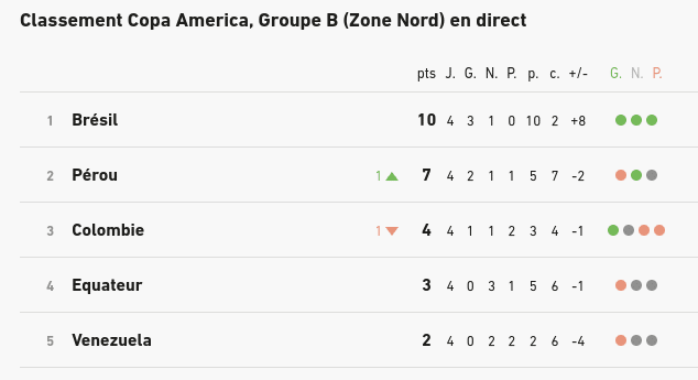 La phase de poules du groupe B touche à sa fin avec cette cinquième et dernière journée, le Brésil, le Pérou, la Colombie puis l’Équateur joueront les quarts de finale qui commenceront dans la nuit de vendredi à samedi.