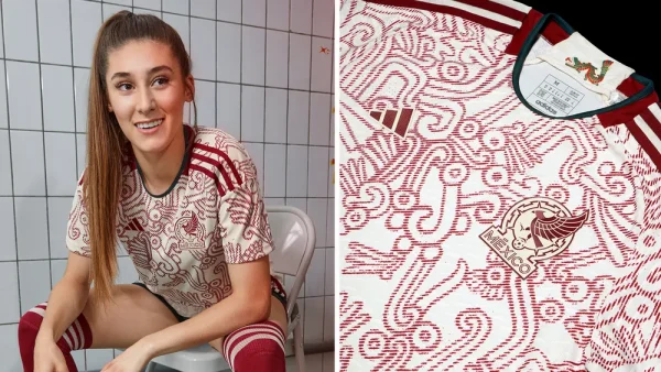 Extérieur : Adidas rend hommage aux anciennes civilisations enracinées dans l'histoire du Mexique pour évoquer l'esprit combatif de l'équipe pour le maillot extérieur. Cinq symboles spéciaux composent l'impression graphique complexe en rouge, qui ressort joliment sur le maillot blanc. L'intérieur du col présente le corps serpent de Quetzalcoat, qui représente les capacités physiques de l'humanité.