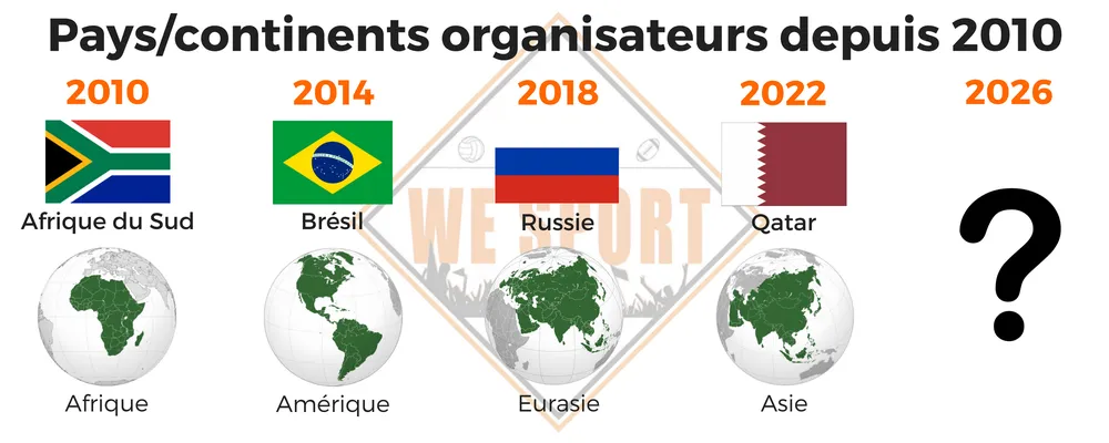 L’obtention potentielle de la réception de cette compétition serait non seulement une récompense après la très bonne image du paysage footballistique marocain, mais l’alternance des pays organisateurs pencherait en faveur du Maroc, en plus du fait que depuis la création de la Coupe du Monde en 1928, une seulement a été organisée en Afrique.
