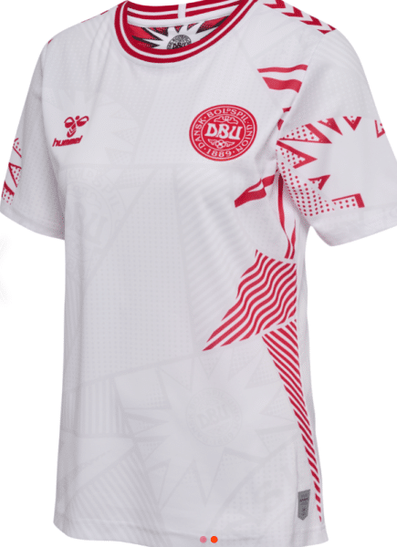 - Danemark : Enfin un maillot plus ou moins travaillé. Sur les tuniques danoises, on appréciera les dessins en filigrane ainsi que les variations de couleurs. Hummel a fait du bon boulot.