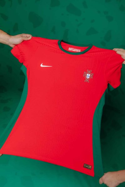 - Portugal : S'ils ne se sont pas foulés pour le maillot domicile, force est de constater que l'extérieur est plus travaillé. Dans tous les cas, on retrouve bien les couleurs emblématiques portugaises.