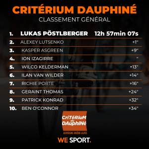 Premier test pour les favoris sur ce Critérium du Dauphiné. Un contre la montre de 16 km remporté par Alexey Lutsenko. Lukas Pöstlberger conserve son maillot jaune pour une seconde.