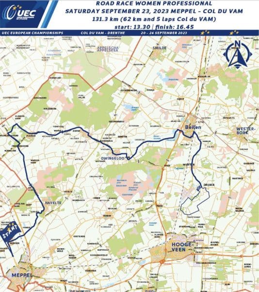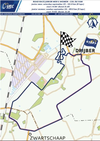 Ce mercredi débutent les championnats d'Europe de cyclisme sur route 2023 du côté de Drenthe (Pays-Bas), jusqu'à dimanche plus de 850 cyclistes tenteront de décrocher le titre prestigieux. Voici les différents parcours des championnats d'Europe de cyclisme sur route 2023.