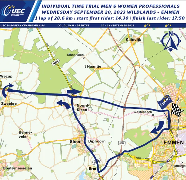 Ce mercredi 20 septembre se disputera l’ensemble des épreuves du contre-la-montre des championnats d’Europe de cyclisme 2023. Alors que chez les juniors, Albert Philipsen (17 ans) a obtenu le titre de champion d’Europe, chez les pros, il faudra attendre 16 h 15 pour voir le premier coureur s’élancer. Les contres-la-montre masculins et féminins emprunteront le même parcours. Une boucle de 28,6 kilomètres dans les rues de Emmen. Départ du Wildlands Zoo d’Emmen. Qui succèdera à Stefan Bissegger, le Suisse avait glané son titre l’été dernier à Munich. Wout Van Aert est le grand favori devant le Suisse Stefan Küng et le Britannique Joshua Tarling. Côté Français, Bruno Armirail Rémi Cavagna, Juliette Labous et Audrey Cordon Ragot tenteront de briller.