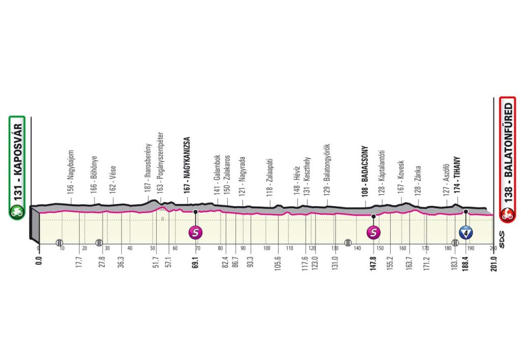 Une étape au bord du Lac Balaton, la mer hongroise est au programme pour clore le Grand Départ de ce Giro 2022. Après une première partie sans grosse difficulté, la course atteint Nagykanizsa puis Hévíz avec son lac thermal, avant de traverser la région du Balaton.