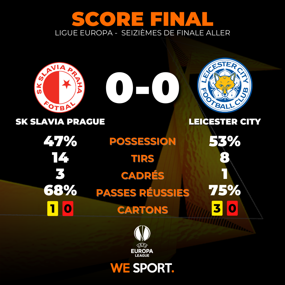 Un match plein d’intensité, de tacles bien appuyés et de manque d’efficacité offensive. Les Foxes de Leicester rentrent en Angleterre avec un 0-0 qui garde les deux équipes à égalité avant le match retour la semaine prochaine. Prague aura montré plus d’envie, particulièrement en deuxième mi-temps, mais n’aura pas su marquer.
