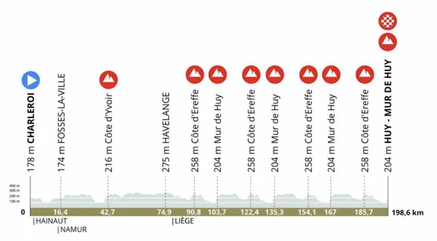 Afin de durcir le final de la course, les organisateurs ont décidé que le Mur de Huy sera à escalader quatre fois (au lieu de trois les années précédentes). Cependant, la côte de Cherave disparait du tracé.