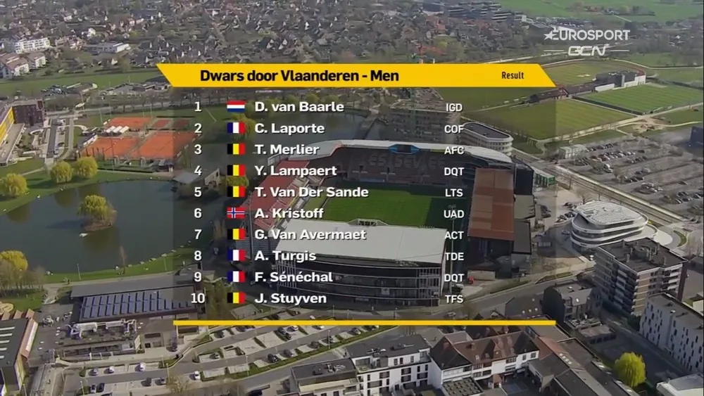 La classique « À travers la Flandre » programmée dans le calendrier World Tour a eu lieu ce 31 mars. Elle relie Roulers à Waregem et propose une distance de 184 km aux 171 coureurs engagés dans le peloton. Elle est remportée par Dylan van Baarle qui s’impose en solitaire après 58 km à l’avant de la course.