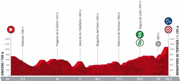 - Les coureurs parcourront 162.3 km avec une difficulté répertoriée au programme, la montée du monastère de Tentudia (10.3km à 5%).