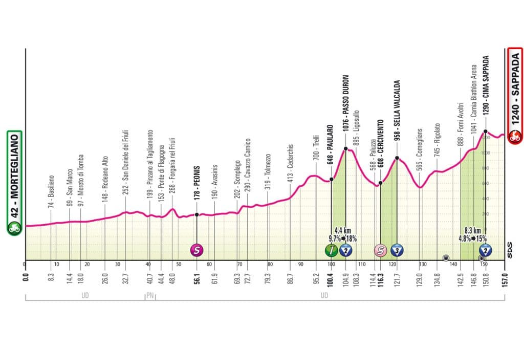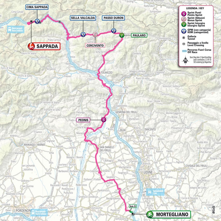 Cette antépénultième étape entre Mortegliano et Sappada risque d'offrir un final explosif ce vendredi. Le peloton ne cessera de monter toute la journée. Les 100 premiers kilomètres ne sont qu'un enchainement de faux plat montant qui permettront aux cuisses de chauffer avant l'enchainement final. Trois ascensions réparties sur 50 kilomètres. Un terrain de jeu parfait pour les puncheurs et baroudeurs.