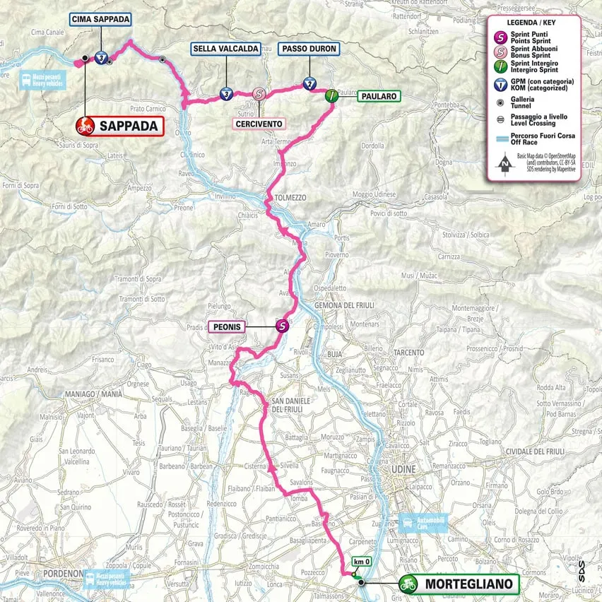 Cette antépénultième étape entre Mortegliano et Sappada risque d’offrir un final explosif ce vendredi. Le peloton ne cessera de monter toute la journée. Les 100 premiers kilomètres ne sont qu’un enchainement de faux plat montant qui permettront aux cuisses de chauffer avant l’enchainement final. Trois ascensions réparties sur 50 kilomètres. Un terrain de jeu parfait pour les puncheurs et baroudeurs.