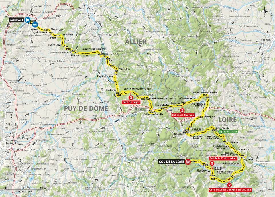 Les coureurs quitteront l'Allier pour rejoindre la Loire et le Col de la Loge. Le départ se fera depuis Gannat, petite ville d'Auvergne-Rhône-Alpes de plus de 5000 habitants. L'arrivée au Col de la Loge est un col des monts du Forez qui culmine à 1 252 mètres d'altitude. Le départ est prévu à 13 h 30 depuis Gannat. L'arrivée au Col de la Loge devrait se faire aux alentours de 16 h 45.