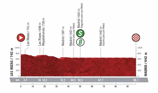 Au départ de Las Rozas, dans la banlieue Ouest de Madrid, le peloton se dirigera ensuite dans le capitale où il passera devant les lieux emblématiques de la capitale. Alors que Remco Evenepoel et son équipe devraient célébrer ce succès avec la traditionnelle coupe de champagne, le reste du peloton se préparera à une arrivée au sprint qui sera abordée avec beaucoup de vitesse avant un dernier kilomètre légèrement montant.