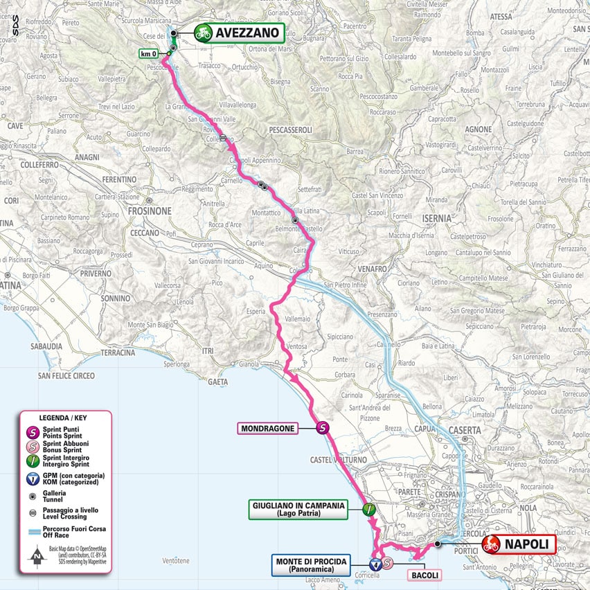 Cette 9ᵉ étape entre Avezzano et Naples se jouera en 3 temps. Le départ rapide en faux plat descendant pendant plus de 35,3 kilomètres sera à bien négocier pour éviter les chutes et les échappées auront peut-être du mal à sortir. Une fois terminé le peloton se dirigera bers une ascension non répertoriée avant de franchir une longue partie plate d'une soixantaine de kilomètres.