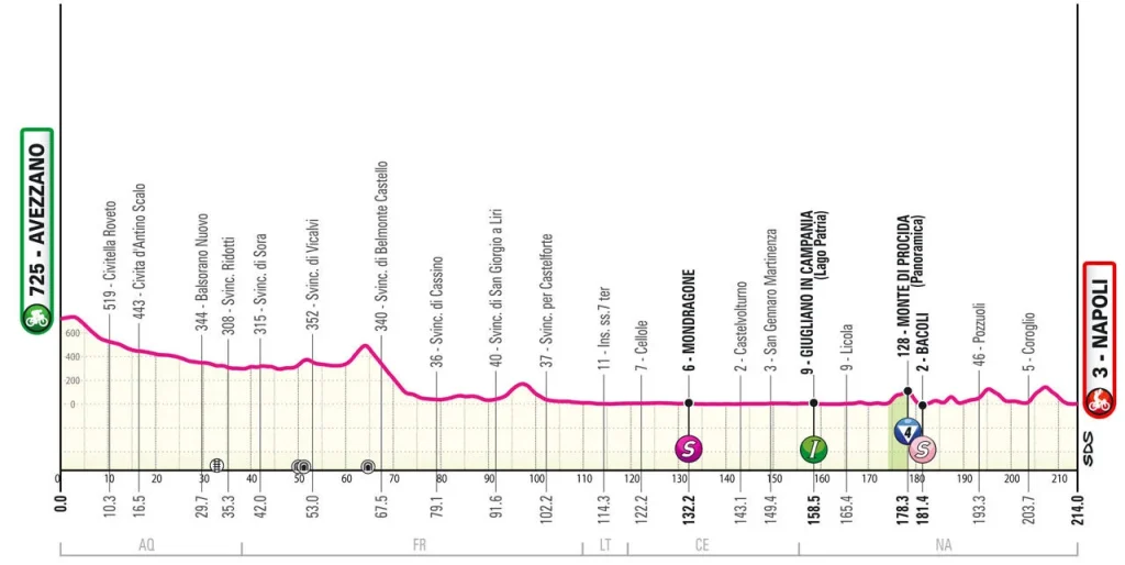 Après une étape dantesque au sommet du Prati di Tivo remporté par Tadej Pogacar le peloton prend la route de Naples pour la dernière étape avant le premier jour de repos. Attention cependant au final casse-pattes au sein de la ville italienne.