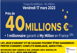 Gains de l’Euromillions du vendredi 17 mars 2023 : un jackpot de 40 millions d’Euros