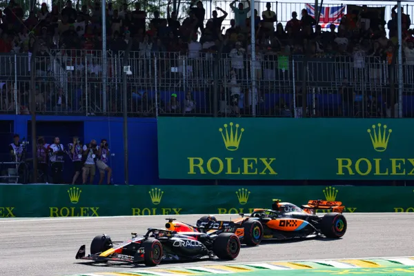 Lors du second départ, Lando Norris se retrouvait aux côtés de Max Verstappen sur la première ligne. L’Anglais, poleman de la course sprint, espérait doubler le Néerlandais dès le premier virage. Le triple champion du monde fermait bien les portes et conservait son rang.