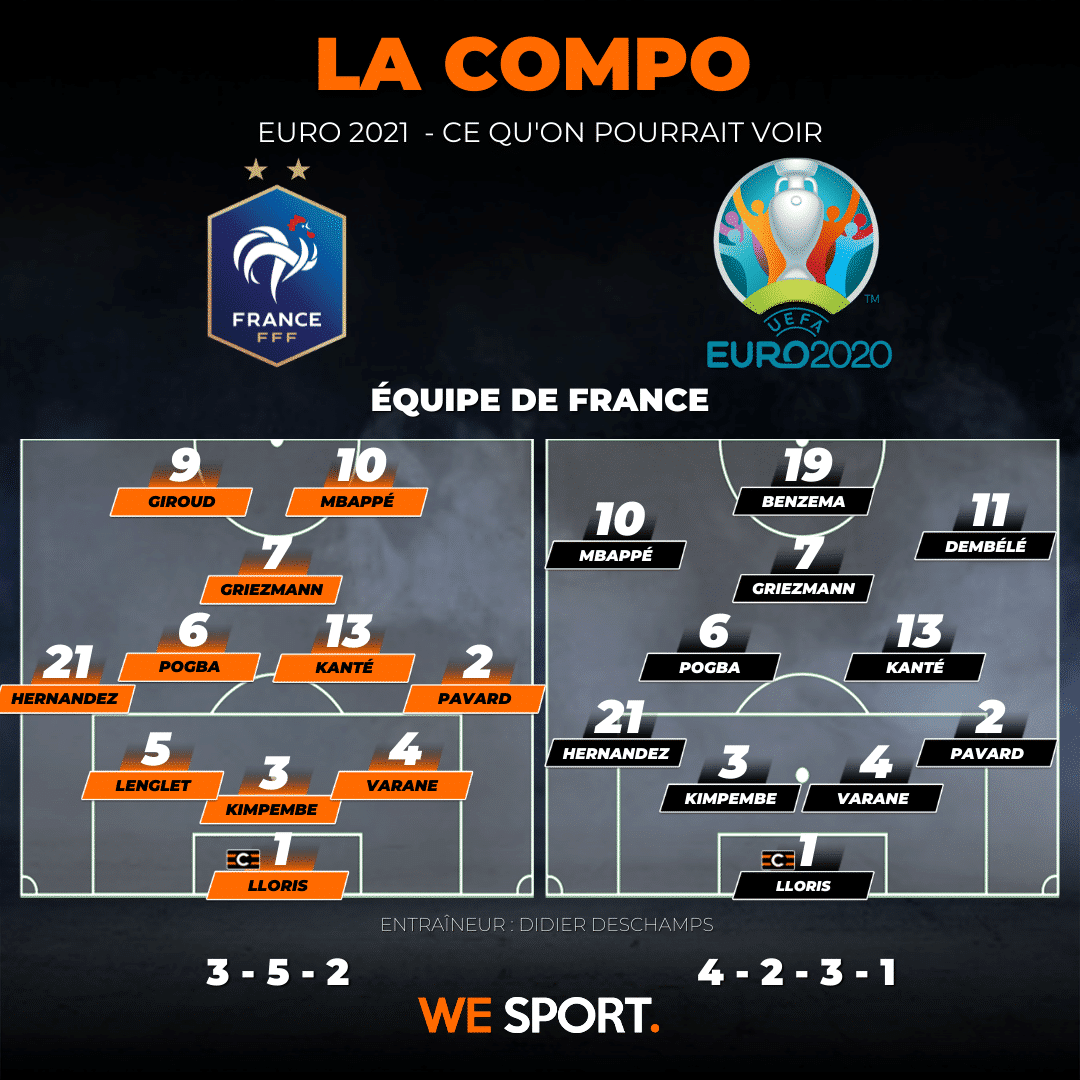 On peut tout de même se faire une idée du noyau dur qui devrait disputer la majorité des rencontres. Lloris en bon capitaine devrait être accompagné de la charnière Kimpembe-Varane. Hernandez et Pavard sur les côtés comme en Russie auront la mission de faire la navette, Kanté et Pogba de cadenasser le milieu. Enfin, Griezmann et Mbappé feront tout pour que les filets tremblent jusqu'au sacre.