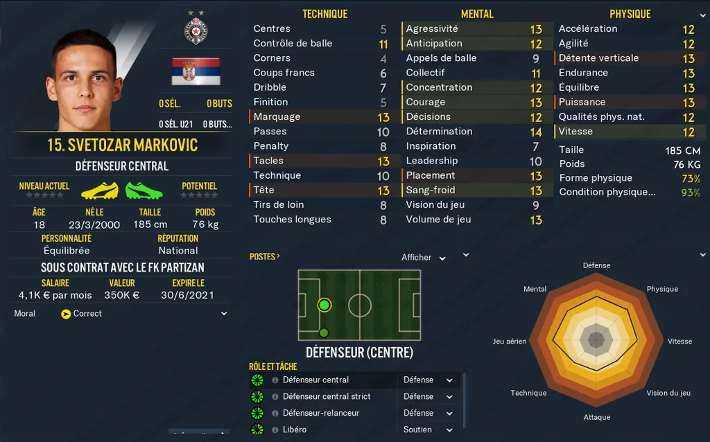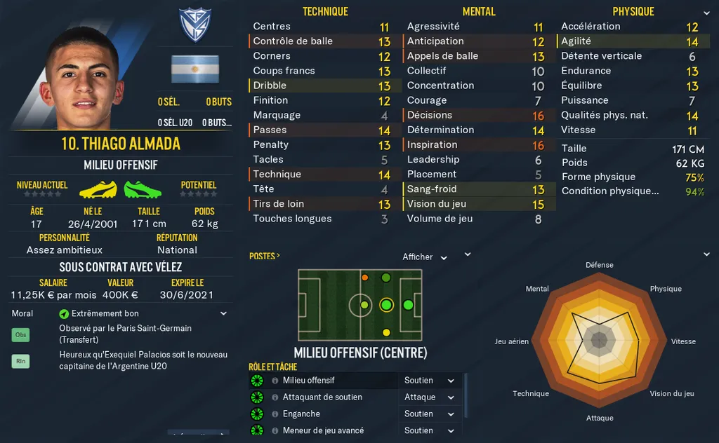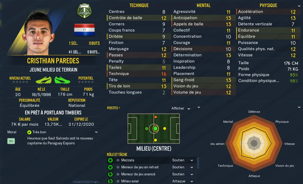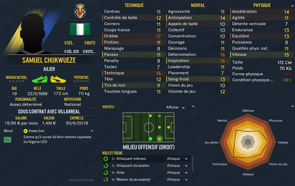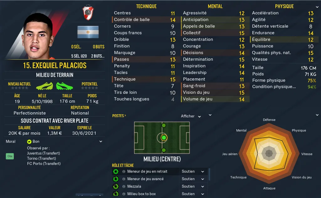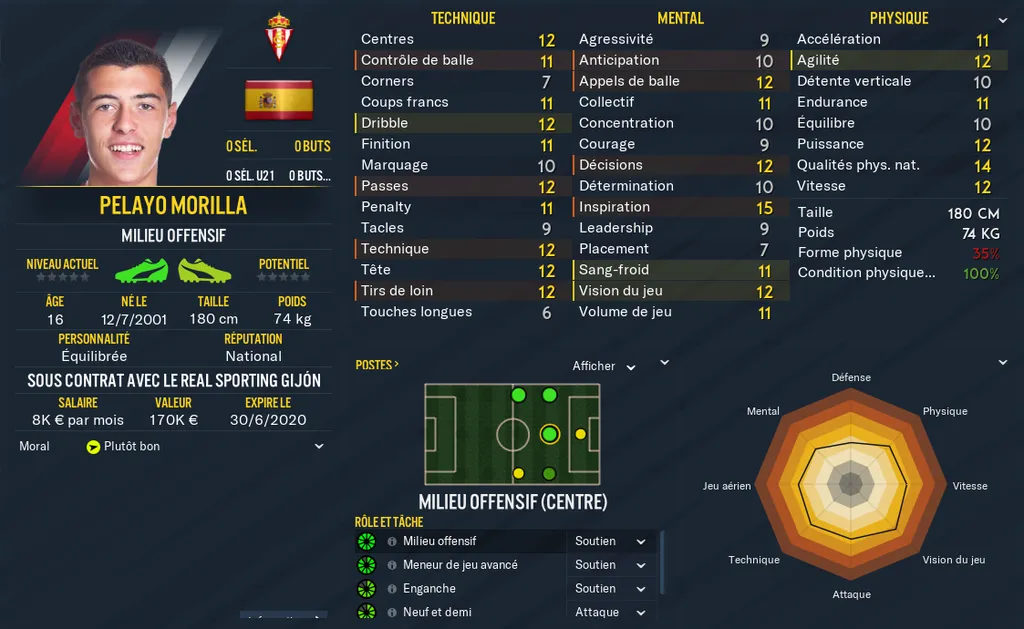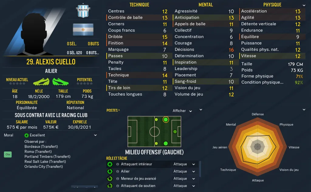 Current Ability : Niveau actuel de votre joueur. La note se situe entre 0 et 200 et correspond à un calcul global des stats et caractéristiques de votre joueur. Le niveau des pieds, les notes cachées, la personnalité, les notes physiques techniques et mentales, tout y passe !