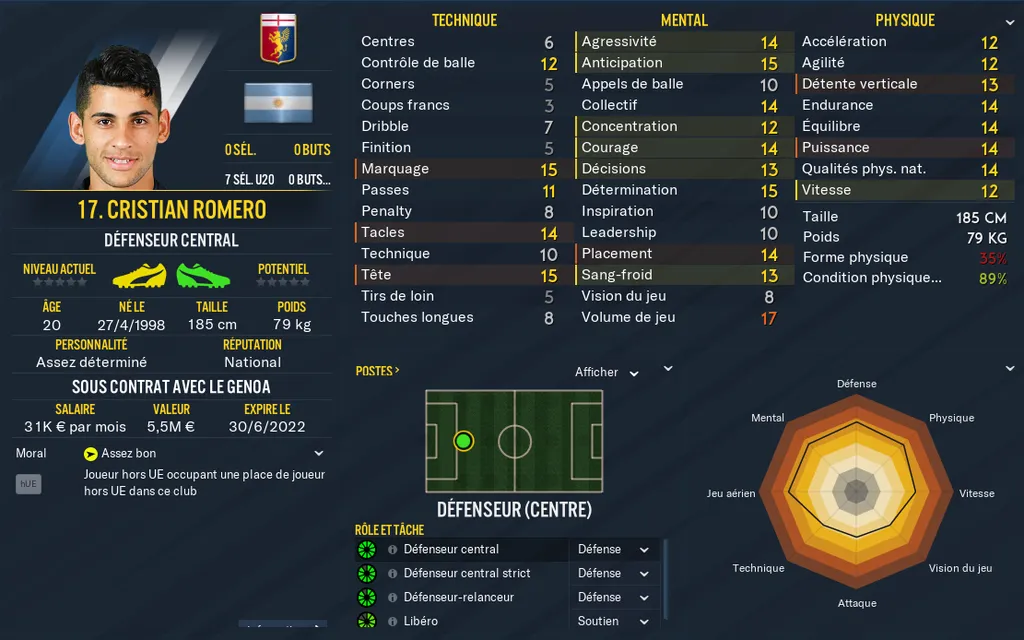 Gold : Cristian Romero (Genoa)