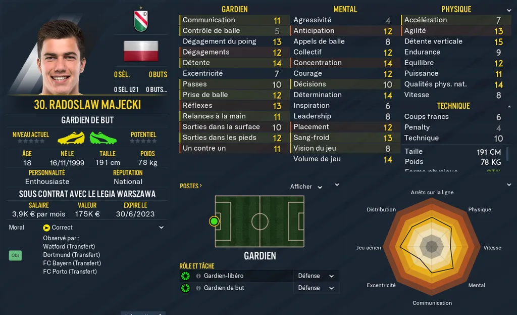 Gold : Radoslaw Majecki (Legia Varsovie)