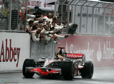 Sur le circuit Gilles-Villeneuve de Montréal, le jeune Hamilton signe sa première pole position au volant de sa McLaren. Le Britannique impressionne en ce début de saison avec 6 podiums en 6 Grands Prix. Mais au Canada, Hamilton va franchir une nouvelle étape : celle de vainqueur de Grand Prix de Formule 1. Après un départ où il a dû contenir Fernando Alonso et Nick Heidfeld, l’Anglais s’envole. Mais cette course est marquée par de nombreux accidents, Lewis alors âgé de 22 ans fait preuve d’une grande maturité. Intraitable à chaque relance de course, il remporte son premier Grand Prix 3 mois seulement après ses débuts en catégorie reine. En montant sur la plus haute marche du podium, il exulte et profite d’entendre son hymne national : “God Save the Queen”.