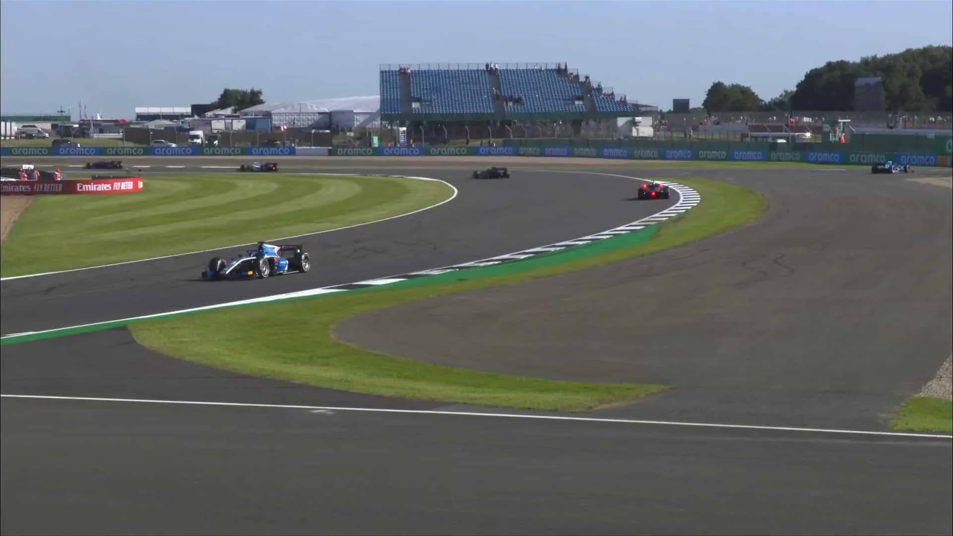 Les voitures dégagées, la safety car rentrée, les pilotes repartent à l’attaque au quatrième tour. Piastri se montre très en vue et va livrer une bataille exceptionnelle avec Lawson pour la sixième place. Ces derniers sont à deux de front dans les secteurs un et deux, sans jamais se toucher. Finalement, le Néo-Zélandais conserve sa position. Mais la fête n’est que de courte durée puisque Deledda part en tête-à-queue et sa monoplace est bloquée à la sortie de Copse. La voiture de sécurité est donc rappelée pour une seconde pige.